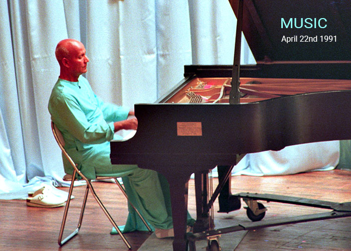 Sri Chinmoy offers a Peace Concert at Hunter College in New York, NY, USA.