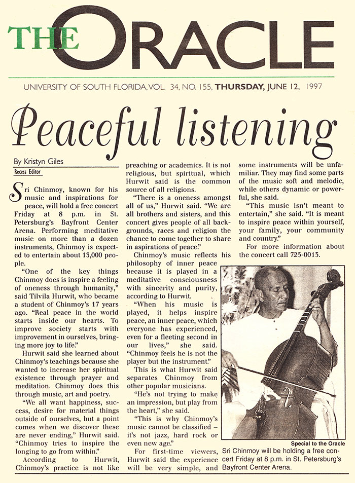 This is what, Hurwit said, separates Chinmoy from other popular musicians.
