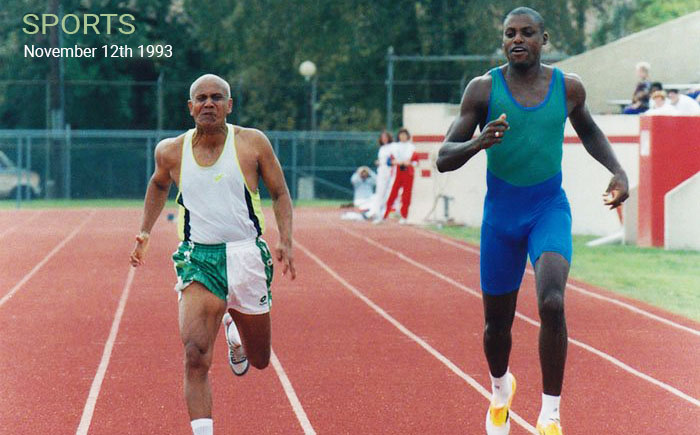 Sri Chinmoy first meets with Sudhahota Carl Lewis, Olympic Track and Field gold medallist, in Jamaica, NY, USA.