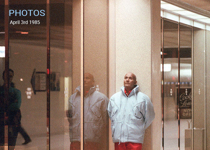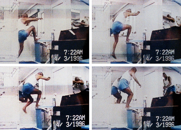 Sri Chinmoy lifts James Nachtwey, award-winning photojournalist, in Jamaica, NY, USA.