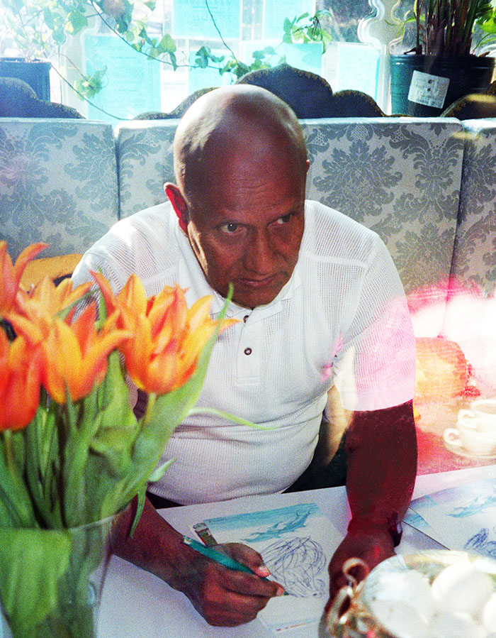 Sri Chinmoy performs his first left-arm lift of 170 lbs., in Jamaica, NY, USA.