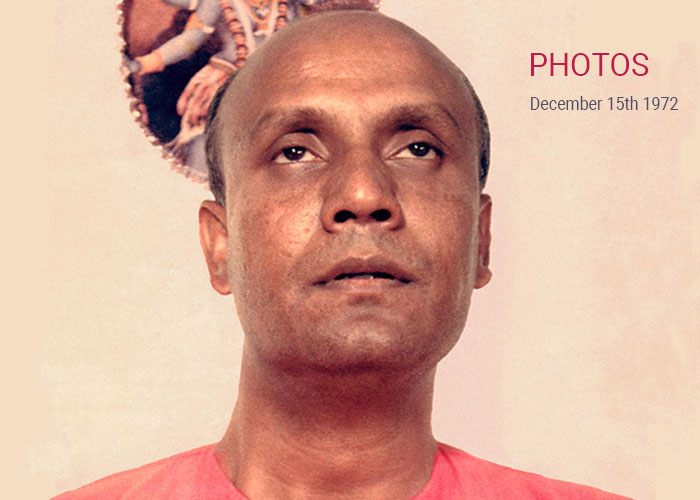 An historic photograph of Sri Chinmoy in the high meditative state of Nirvikalpa Samadhi is taken at the Sri Chinmoy Centre Church in Bayside, New York, NY, USA. The picture is later used on the poster for Sri Chinmoy’s New Year’s Meditation, held at Hunter College, New York, on 29 December.