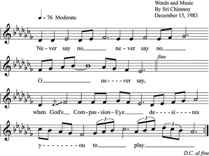 Sri Chinmoy composes the song ‘Never Say No’ in Maracaibo, Venezuela.