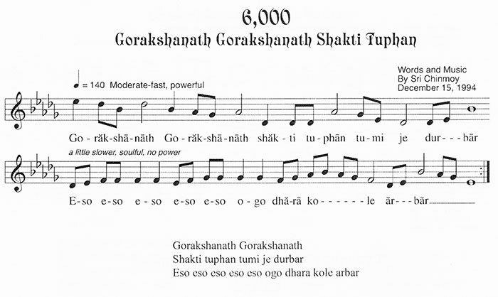 Sri Chinmoy completes his 6,000th Bengali song Gorokshanath Gorokshanath Shakti Tuphan at the Blue Star Hotel in Kathmandu, Nepal.