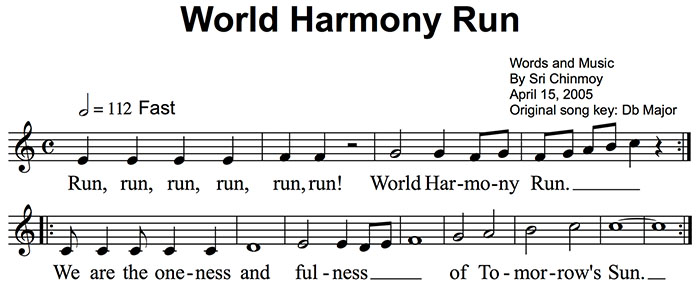 Sri Chinmoy’s comments to his disciples while teaching them the song for the World Harmony Run at Aspiration-Ground, Jamaica, New York.