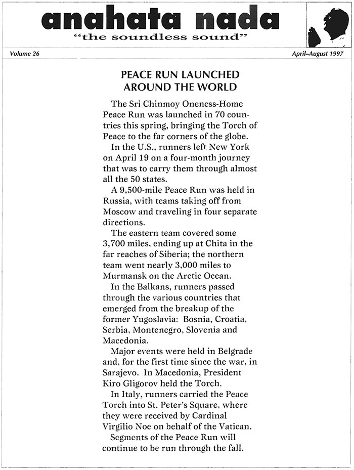 The Sri Chinmoy Oneness-Home Peace Run was launched in 70 countries this spring, bringing the Torch of Peace to the far corners of the globe.