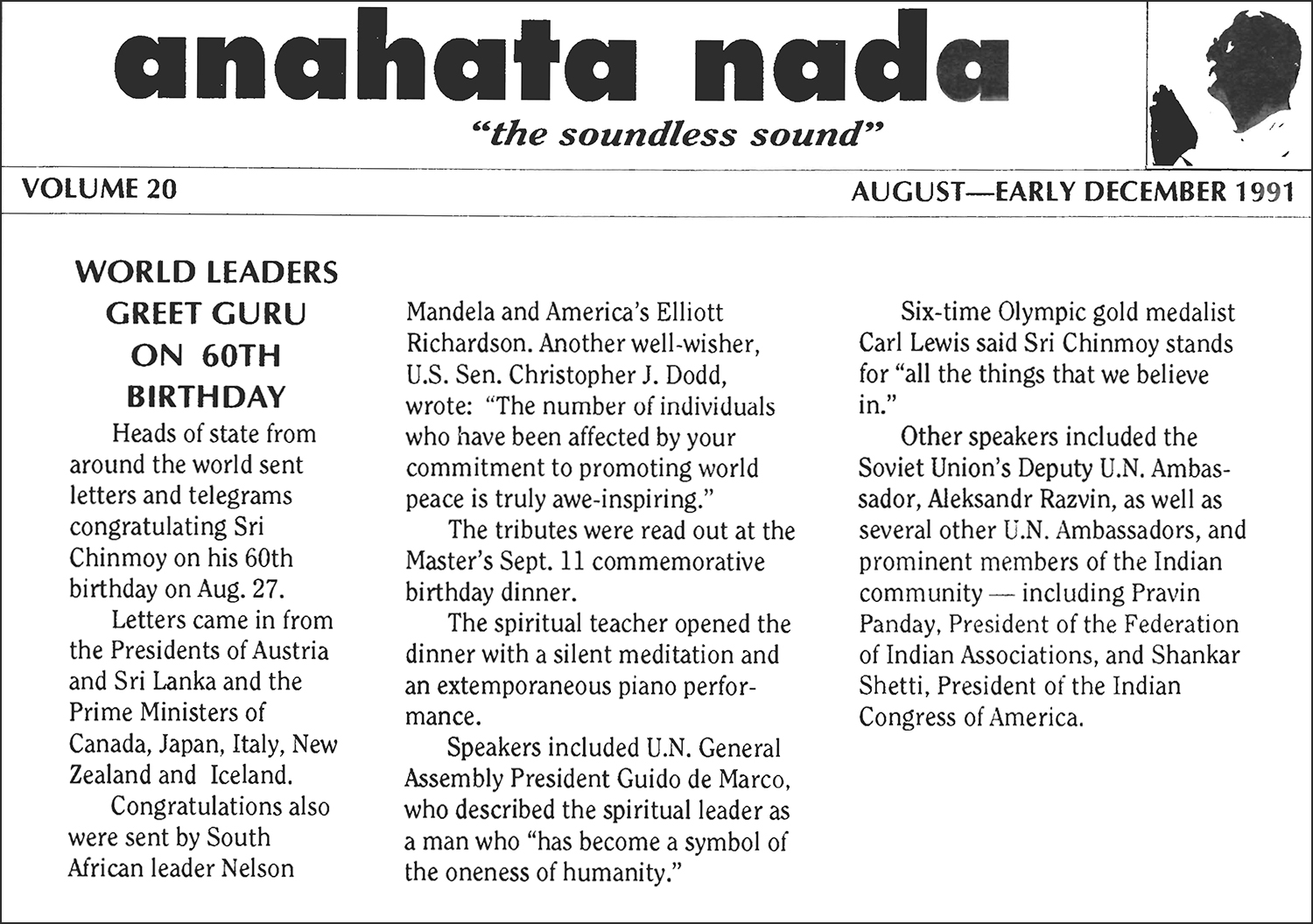 Published in Anahata Nada, Volume 20, August–Early December1991