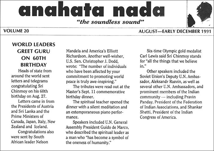 Heads of state from around the world sent letters and telegrams congratulating Sri Chinmoy on his 60th birthday on Aug. 27.