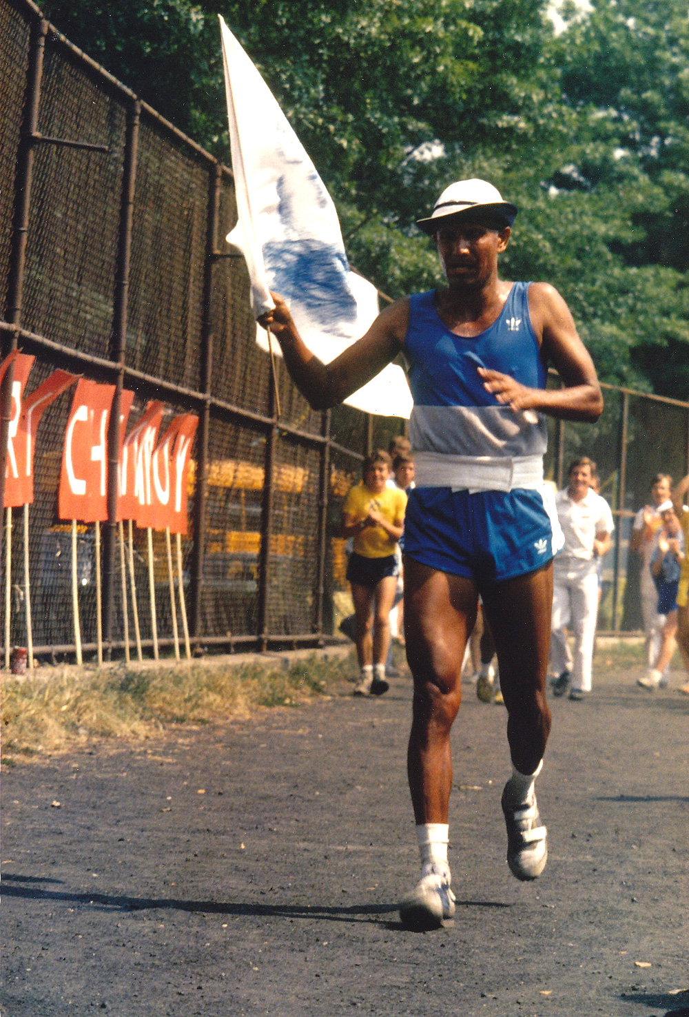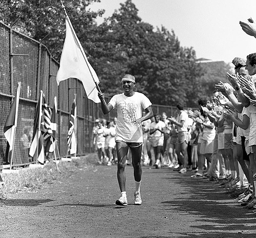 Sri Chinmoy finishes the 2nd annual 47 Mile Race at Jamaica High School track in Jamaica, Queens, New York, in a time of 12 hours, 41 minutes and 48 seconds.