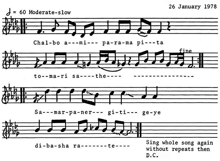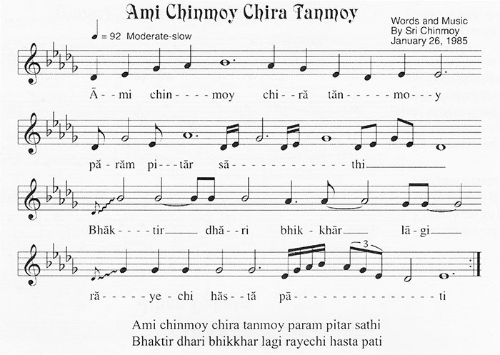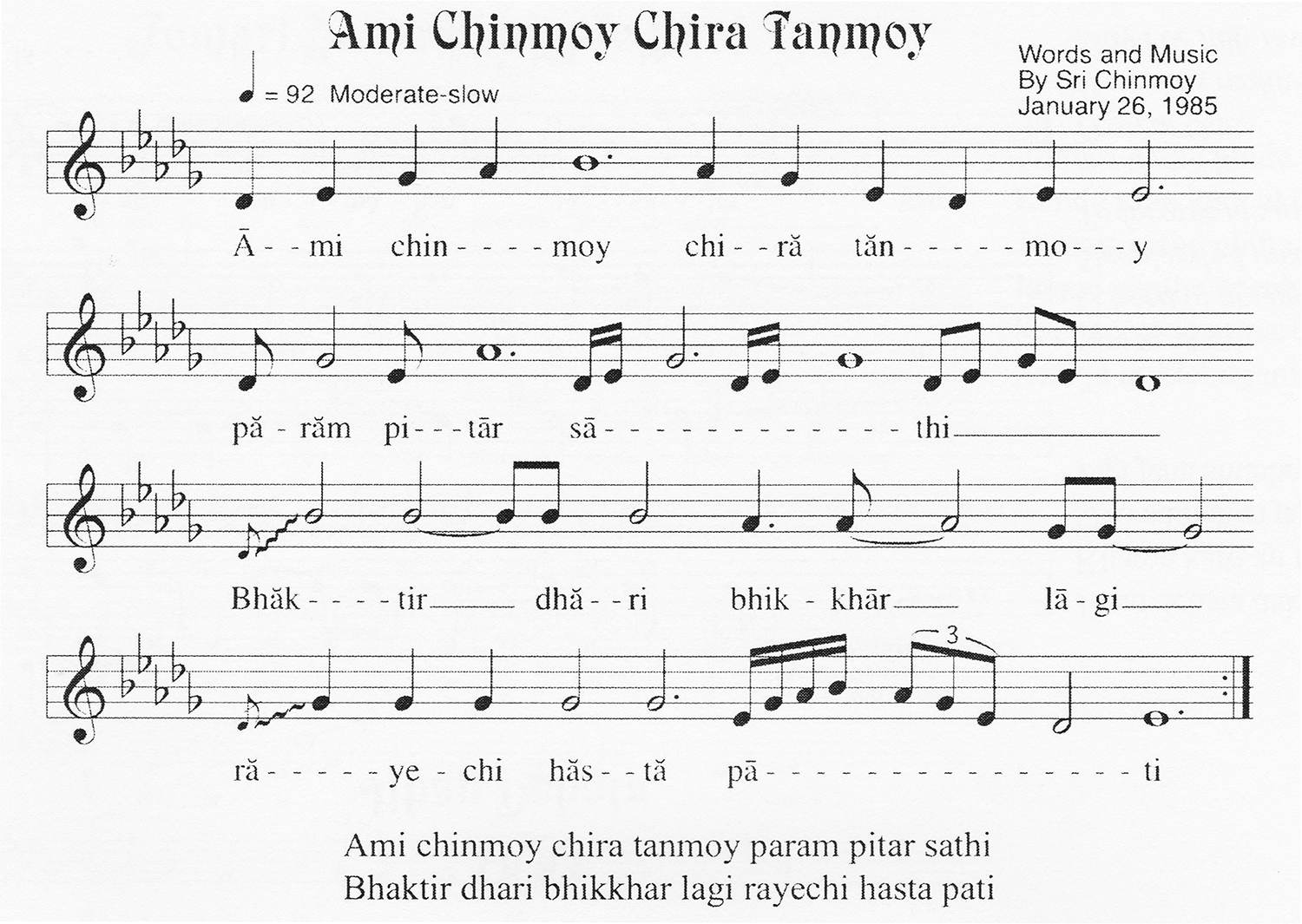 Chalbo Ami Parama Pita was considered to be Sri Chinmoy’s 2,000th Bengali song. However, in 2007 Sri Chinmoy revised the listing to make Jiban Debata number 2,000.