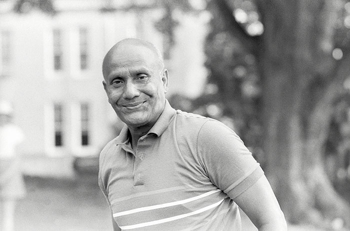 1985 Photo by Bhashwar Hart Sri Chinmoy on the day of the first Sri Chinmoy Masters Games in Greenwich, Connecticut.