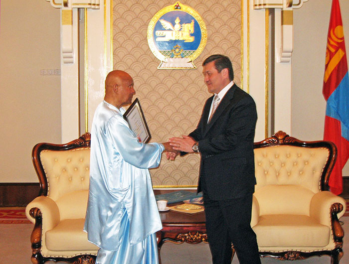 [Mr. Costa presents Sri Chinmoy with the Award.]
