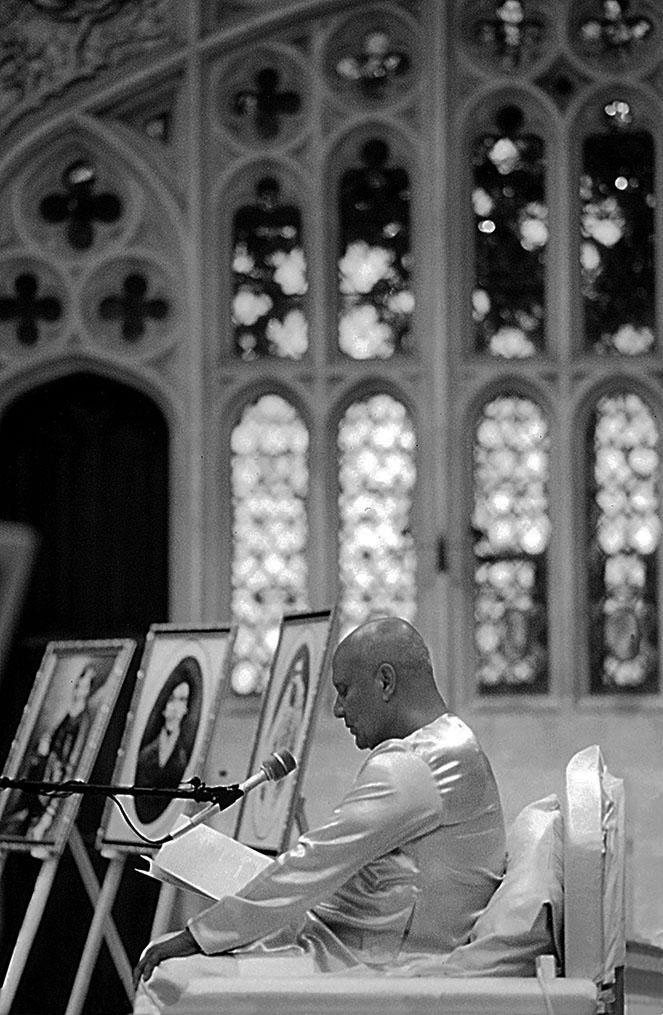 Sri Chinmoy delivers a lecture, entitled ‘Perfection-Goal’, at the University of London in London, UK.