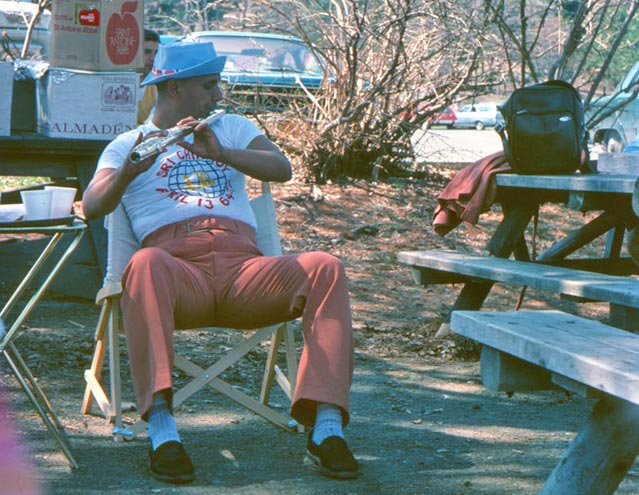 1976 Sri Chinmoy meditates in the forest at Bear Mountain State Park, located on the west bank of the Hudson River in upstate New York. (Note: This photo is from a later occassion (1977-04-12)