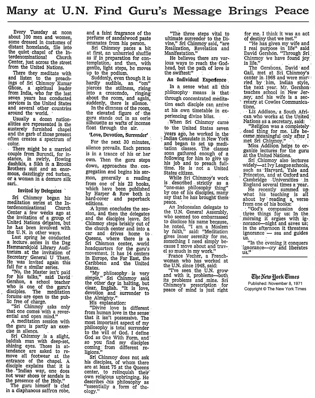 Published in The New York Times, November 8, 1971
