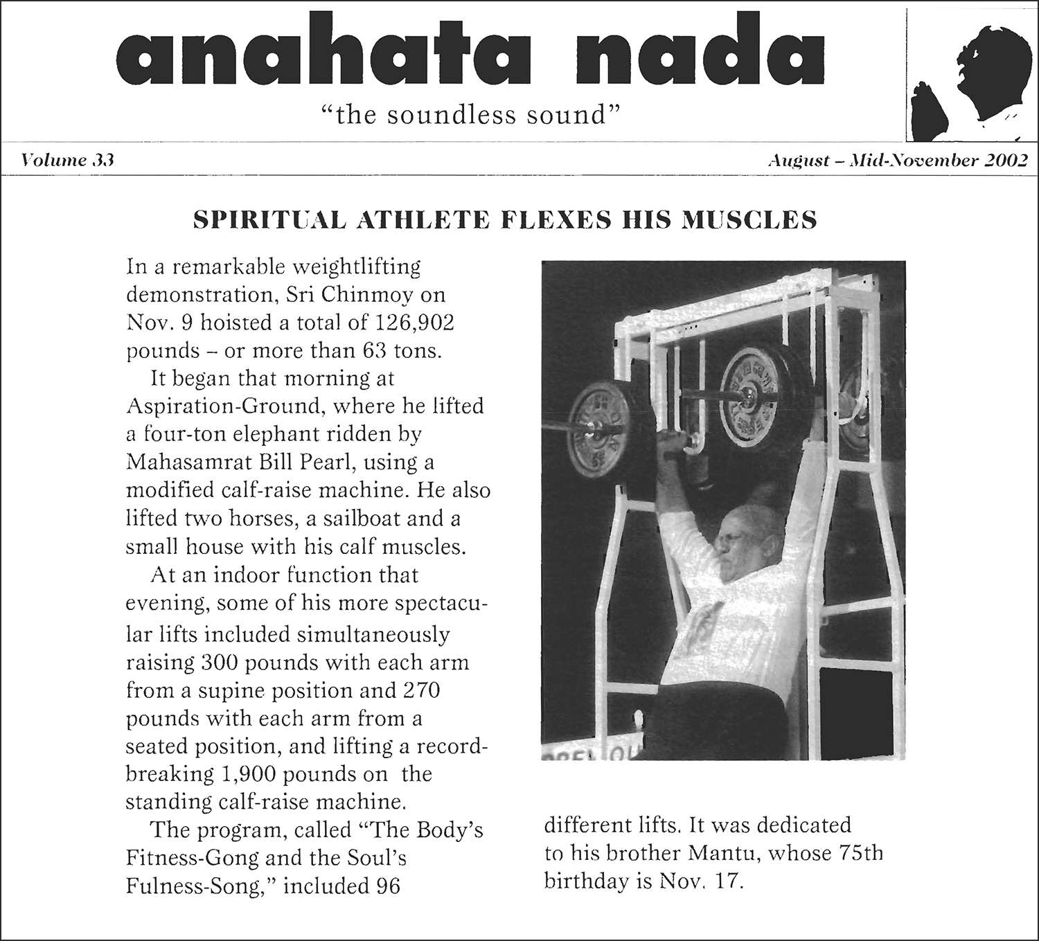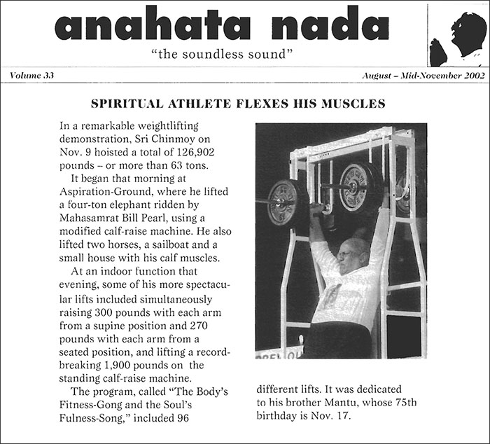 In a remarkable weightlifting demonstration, Sri Chinmoy on Nov. 9 hoisted a total of 126,902 pounds — or more than 63 tons.