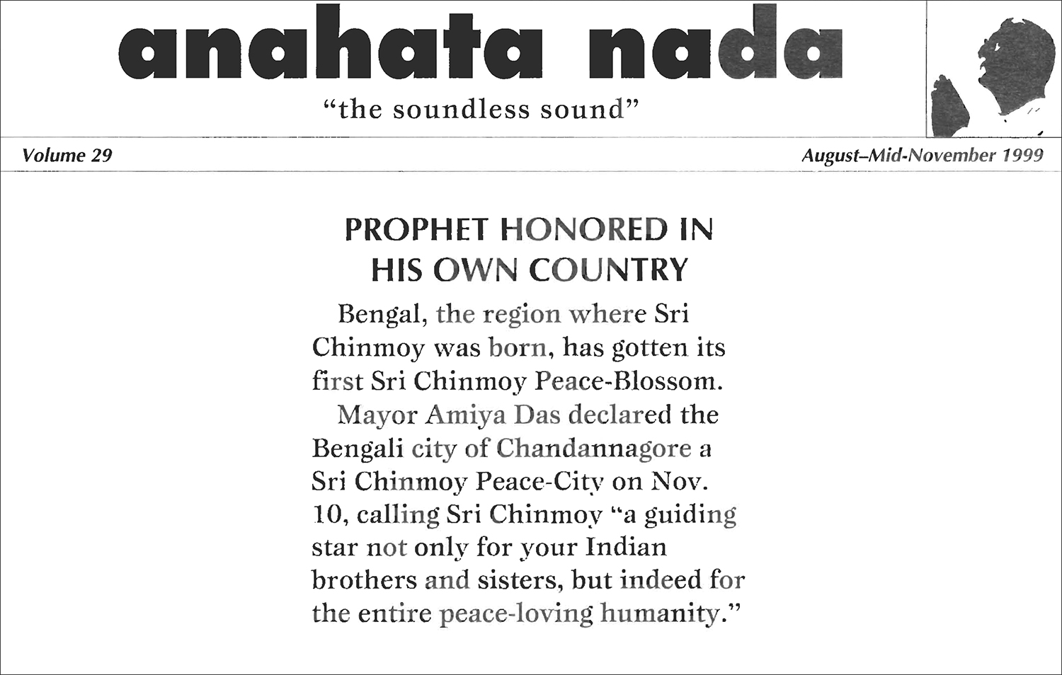 Published in Anahata Nada, Volume 29, August–Mid-November 1999