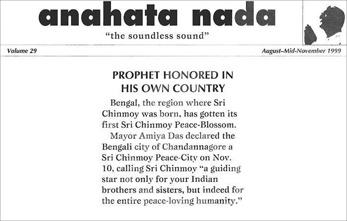 Mayor Amiya Das declared the Bengali city of Chandannagore a Sri Chinmoy Peace-City on Nov. 10, calling Sri Chinmoy “a guiding star not only for your Indian brothers and sisters, but indeed for the entire peace-loving humanity.”