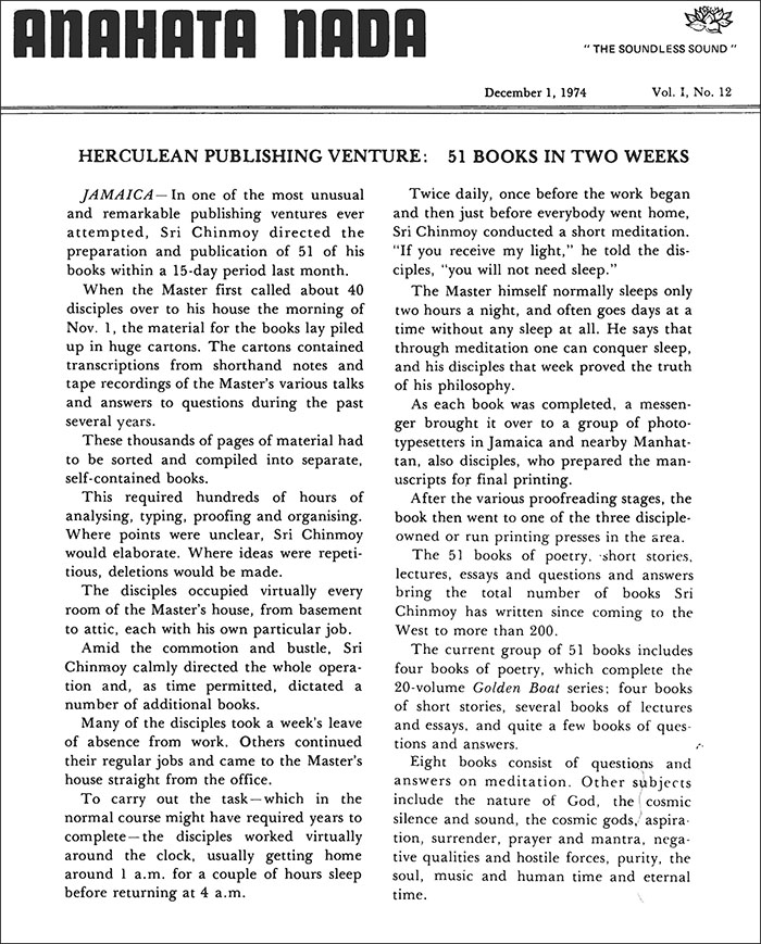 JAMAICA — In one of the most unusual and remarkable publishing ventures ever attempted, Sri Chinmoy directed the preparation and publication of 51 of his books within a 15-day period last month.
