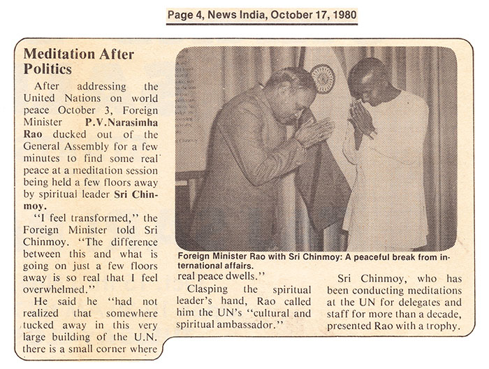 Foreign Minister Rao with Sri Chinmoy: A peaceful break from international affairs.