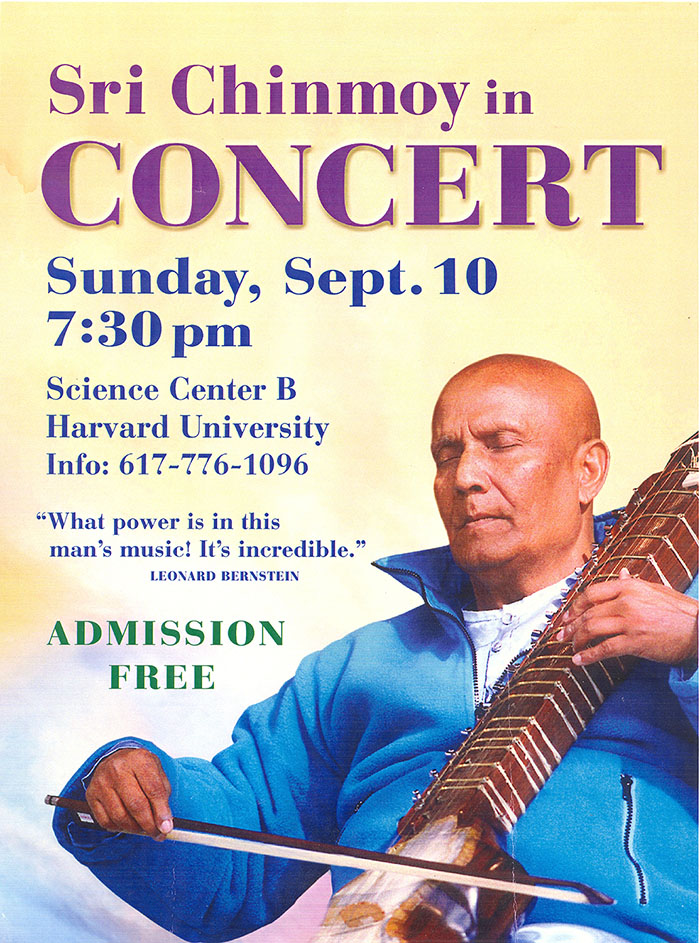 Sri Chinmoy offers a Peace Concert, (594) and also receives a Citation of Honour from the Pluralism Project at Harvard University Science Center in Boston Massachusetts. The concert is dedicated to Raisa Maximovna Gorbachev.