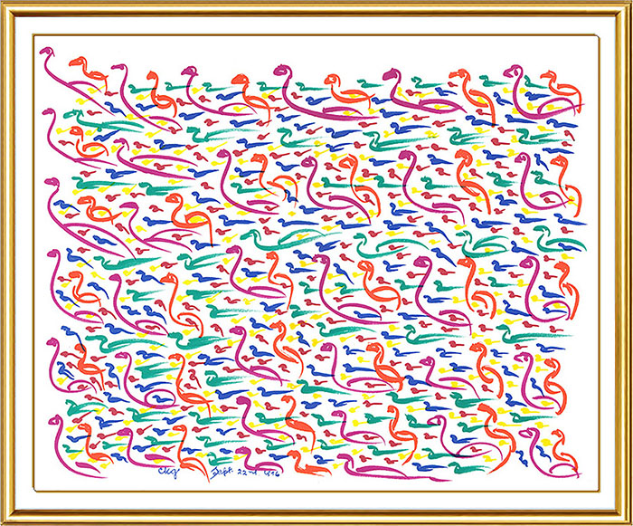This artwork, created in New York, is gifted by Sri Chinmoy to The Victorian Arts Centre (later known as Arts Centre Melbourne) and is accepted by Antony Rouse, Assistant General Manager in November 1996. It remains in the permanent collection of Arts Centre Melbourne, Southbank, Melbourne, Victoria, Australia.