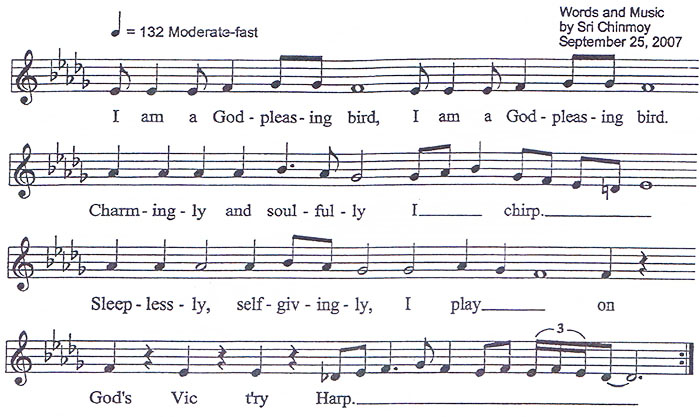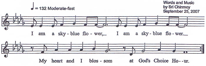 2007 I am a God-pleasing Bird I am a Sky-blue Flower Sri Chinmoy composes two songs, the last in a canon of over 23,000 works that span a lifetime of musical creativity.